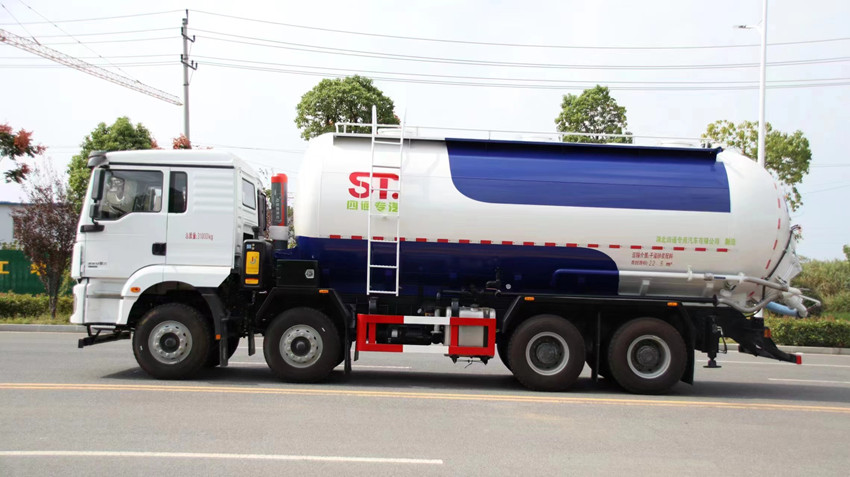 整车型号STD5310GFLSX6,底盘型号SX1319MB6F1,8×4驱动,潍柴350马力WP8.350E61国6发动机,M3000驾驶室,法士特10档变速箱,5.5吨双前桥,13吨双后桥,11.00R20钢丝胎,300L铝合金油箱,轴距1800+3375+1400mm,带空调、行驶记录仪及备胎。